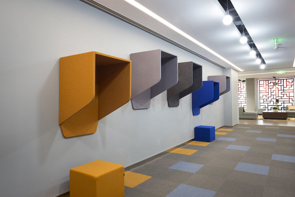 根据建筑条件设计团队得到的是一个方正的形体,看上去像一个大的盒子。在这个盒子里,设计师将室内所需的功能分隔成大大小小不同的方块,希望通过不同的方块自由组合构成一个趣味活泼的室内空间。