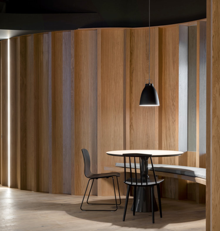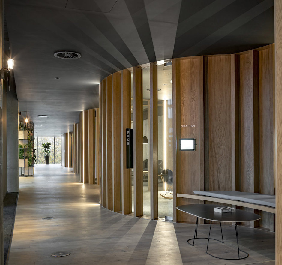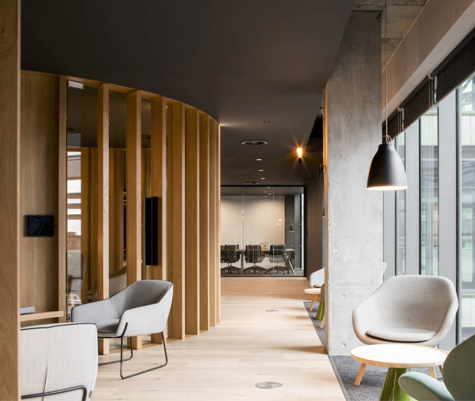 30,000平方英尺的新办公室位于都柏林市中心的One Park Place大厦,ODOS设计团队以宁静的暗色调和蜿蜒流动的曲线打造室内空间。设计概念源于都柏林的城市道路肌理。与美国规则的道路规划相比,都柏林的城市道路则呈现出独特的流动性,这成为规划本案的核心概念,也由此让室内空间与城市文脉之间建立起了关联。